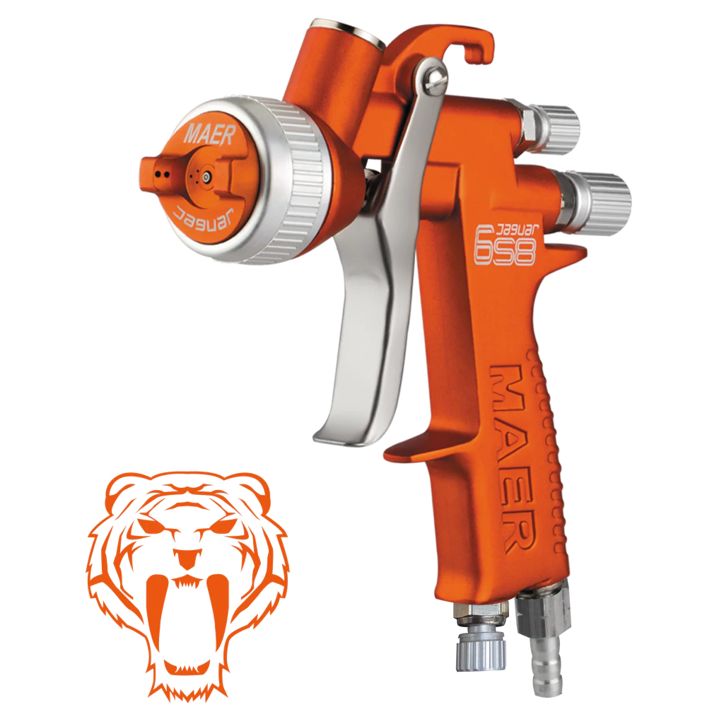 MAER presenta la nueva 658 JAGUAR de envidiable estética, destinada específicamente al rubro del repintado automotor. Es una pistola de excelente equilibrio, mecanizada en un solo eje, lo cual garantiza el centrado de la aguja con el pico de fluido y la boquilla.